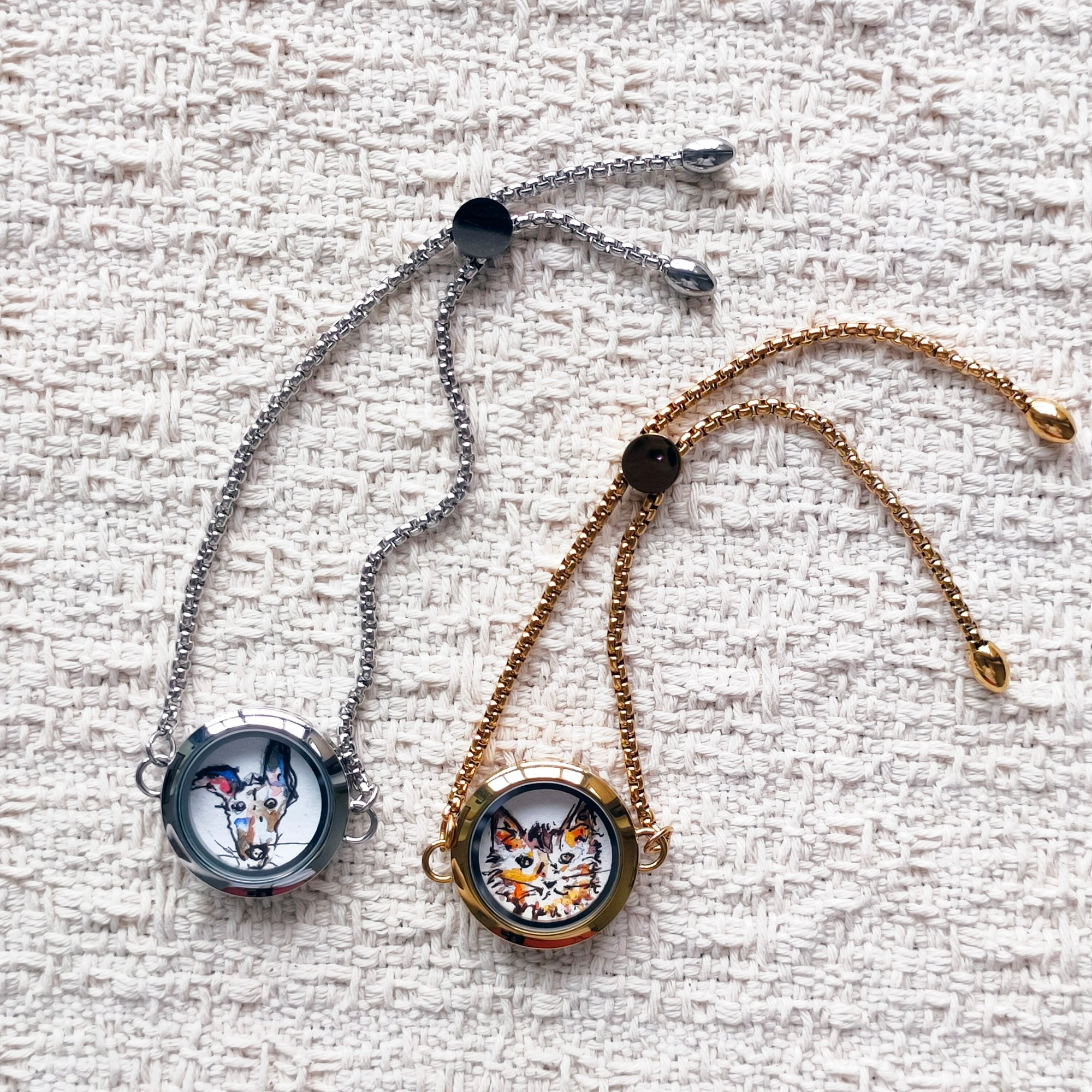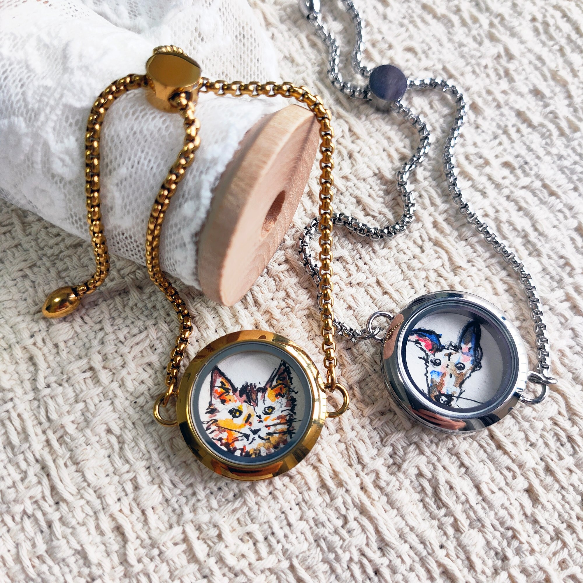 A jewellery art featuring our beautifully bespoke miniature pet portrait, 'Love' charm necklace.