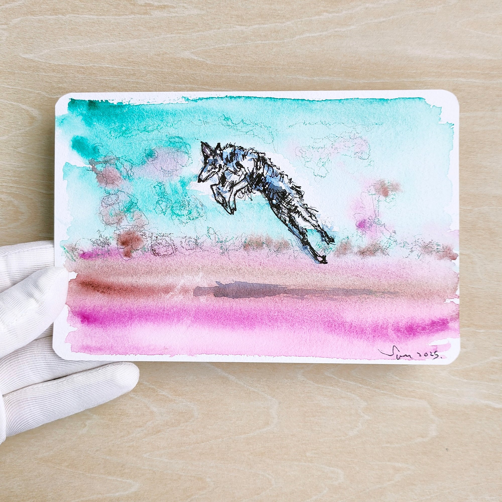 Media: Watercolour and ink on professional 300g cold-pressed watercolour paper.