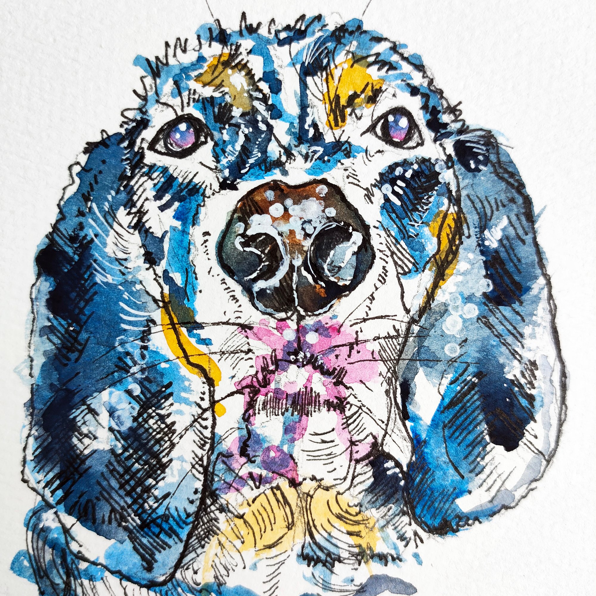 I incorporate contemporary, bold colours and quirky outlines to capture the essence of your pet, both physically and characteristically.