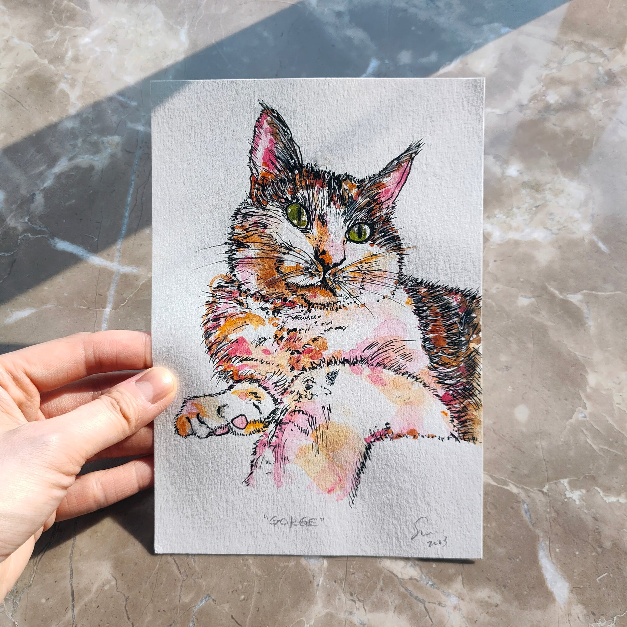 Every piece is 100% hand-painted using watercolour on an ink outline and details.
